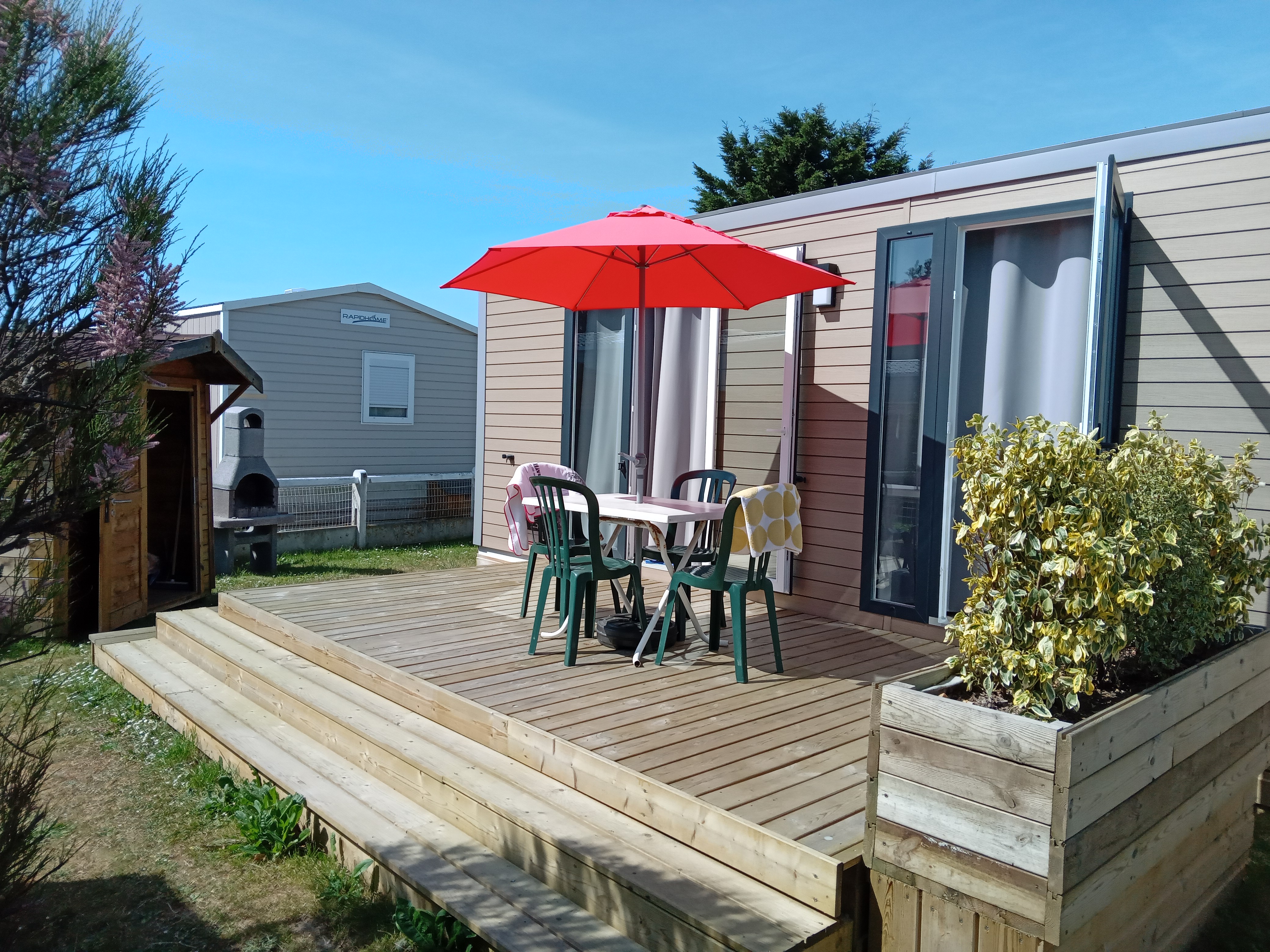 Posté le 13/05/2019 à 13:43"Beau parc résidentiel de qualité. La plage à deux pas directement du camping (pas de vue sur mer des locatifs). Locatif parfait propre de qualité et de l espace à l extérieur (clôturé) . Très bon accueil et une dame avec un grand sourire pour vous faire découvrir votre locatif !"