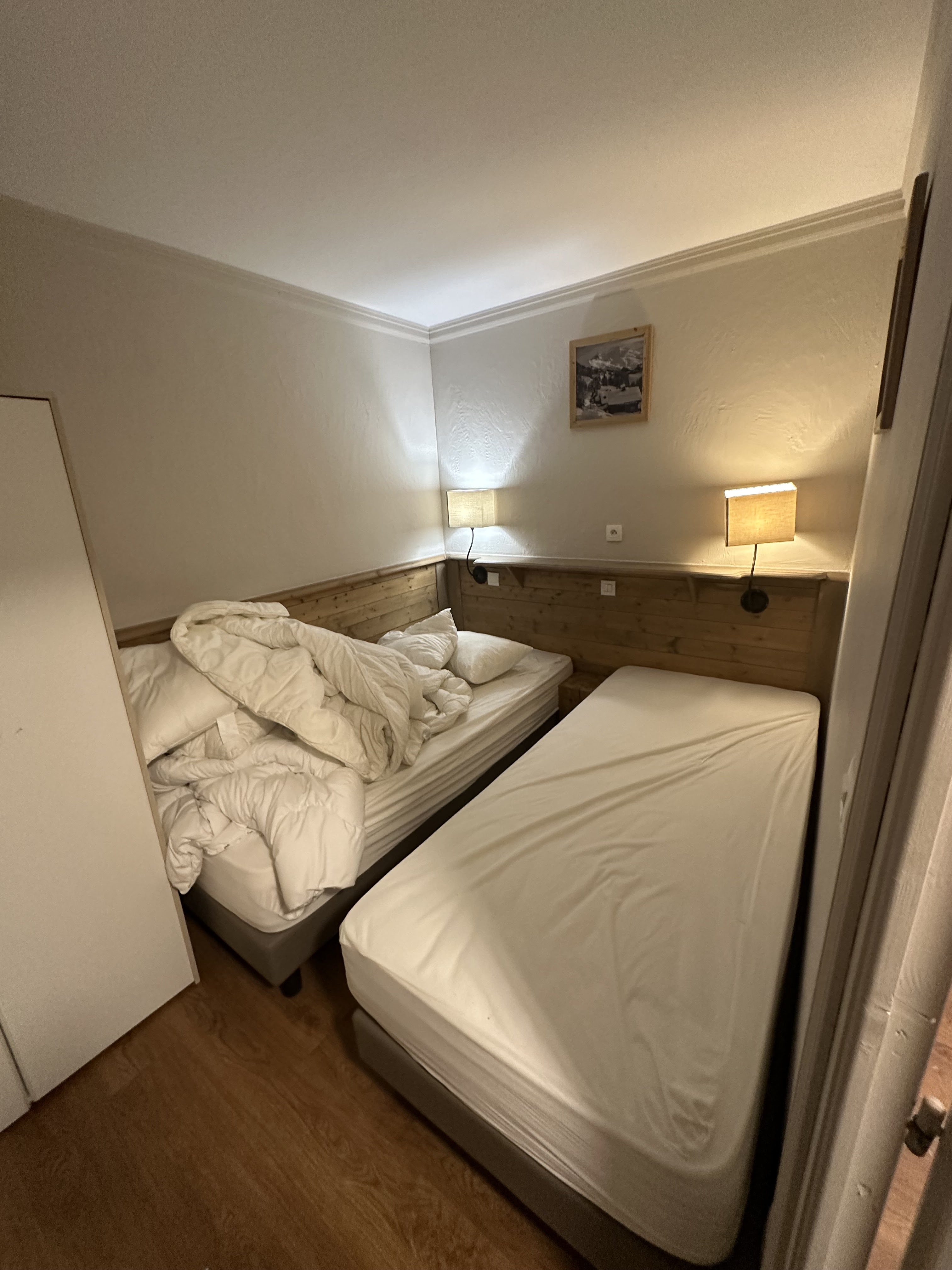 Posté le 19/02/2024 à 21:14" Je viens de passer de très belles vacances à Val Thorens. Nous avions un appartement pour 10 personnes. Nous étions là-bas avec 8 personnes et avions largement assez d'espace. La cuisine était équipée de tout ce dont vous avez besoin. Nous avions 4 douches, 3 toilettes. Il y avait deux sèche-cheveux disponibles. Personnel sympathique en journée et également en soirée. Nous avons préféré le pain du supermarché. Il y avait pas mal de bémols, les chaises étaient de très mauvaise qualité (une affaissée), beaucoup de bruit des voisins (mais heureusement calme vers 22 heures), l'électricité coupait tous les soirs et les chauffages du salon ne fonctionnaient pas. travail, ce qui nous faisait parfois un peu froid. Nous avons eu un feu électrique ! La piscine est agréable pour se détendre après une journée de ski, mais un sauna ne fonctionnait pas, l'eau n'était pas très chaude et les murs auraient besoin d'une couche de peinture, ainsi que les panneaux au plafond. Alors, avec un peu d'embellissement, c'est un emplacement au top !"