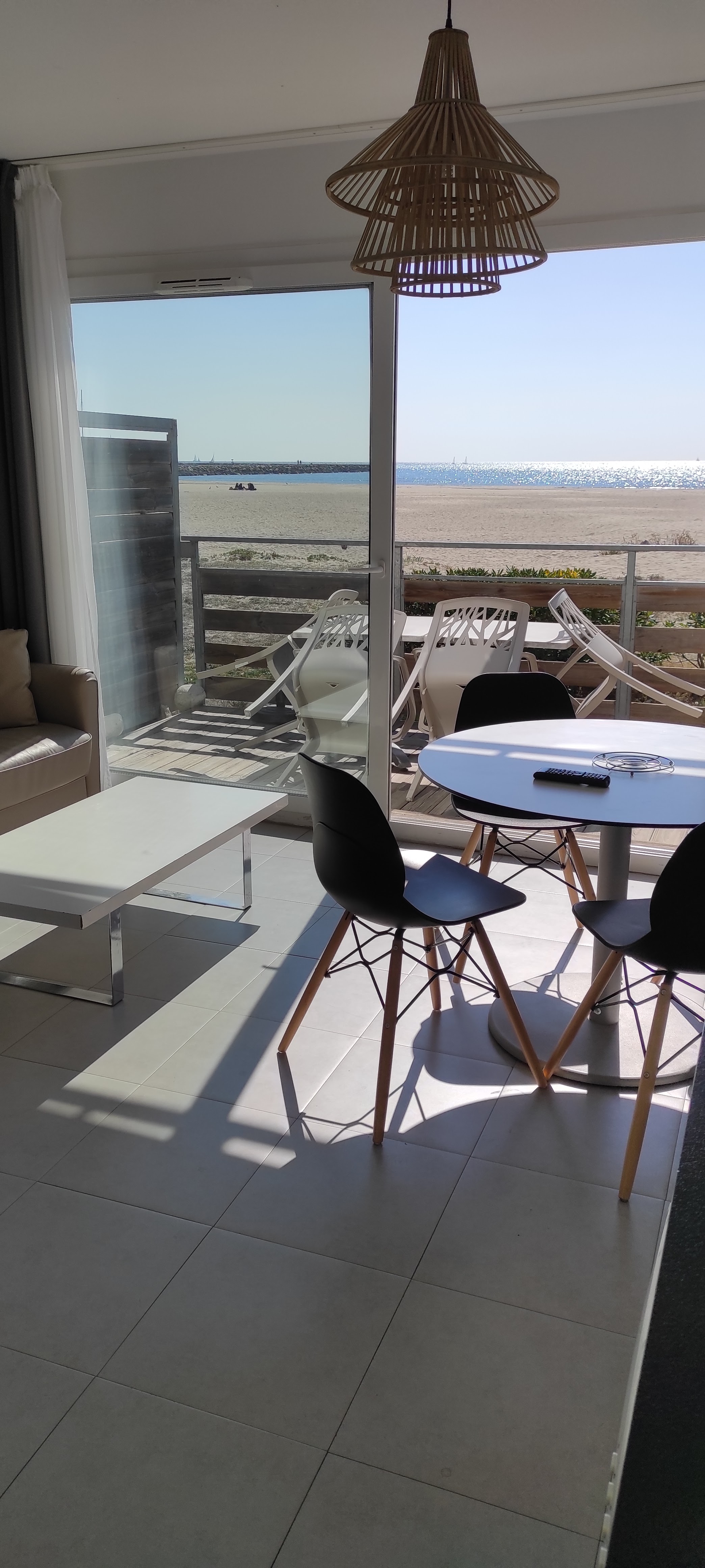 Super séjour, très dépaysant grâce à la situation de la résidence sur la plage. Très bel appartement très spacieux avec une grande terrasse face à la mer. Si j'avais des suggestions à faire : il manque de quoi pendre les vêtements dans l'entrée, un petit meuble ou étagère dans le coin cuisine pour poser les provisions (qui restent dans un sac par terre) et remplacer la baignoire par une douche à l'italienne. Ce ne sont que des suggestions car nous avons adoré ces 4 jours. Nous ne connaissions pas la Grande Motte et nous reviendrons l'année prochaine en espérant avoir le même appartement.